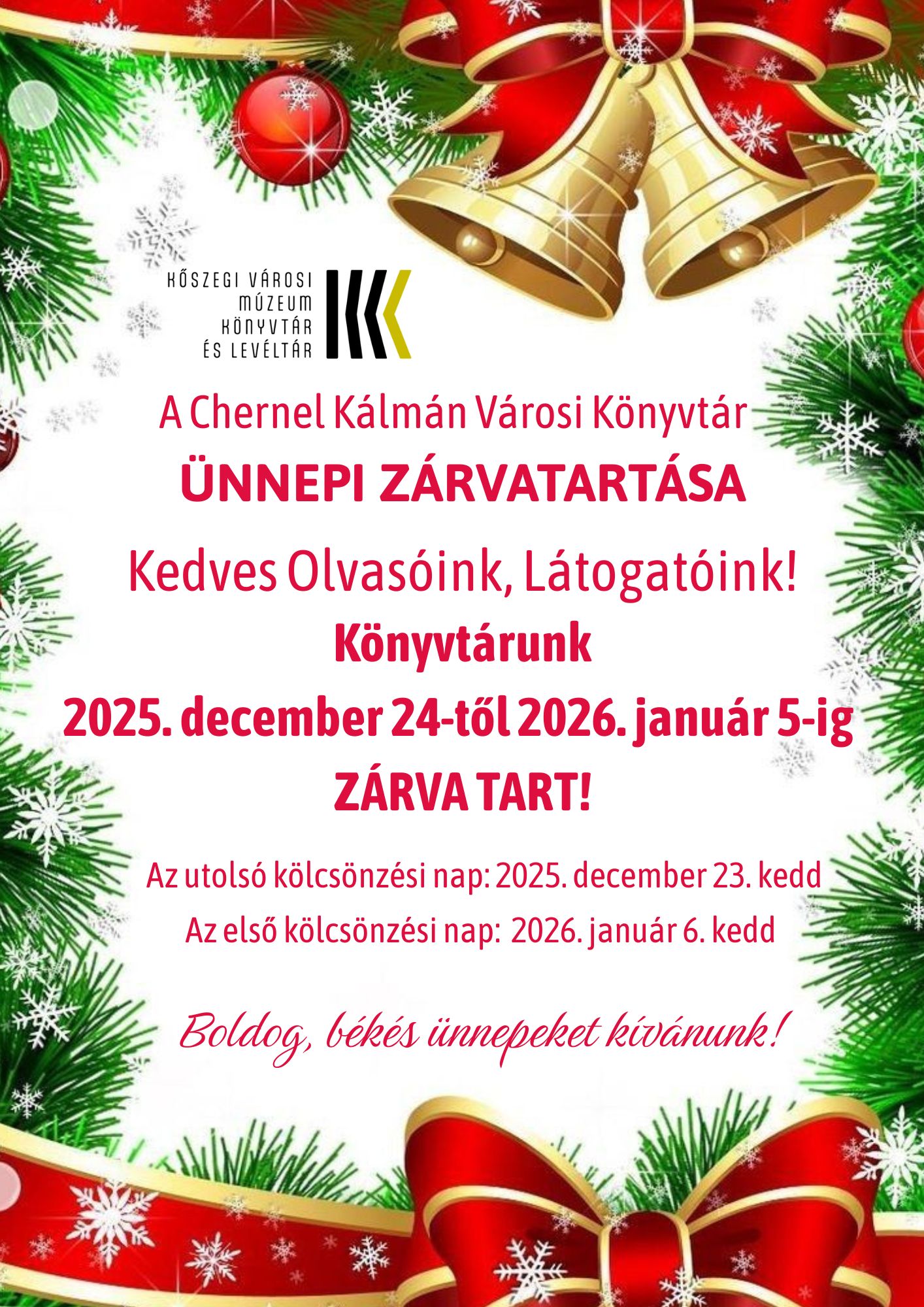 2025. december 24-től 2026. január 5-ig könyvtárunk zárva tart!