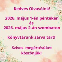 Sok szeretettel várunk minden érdeklődőt személyes, interaktív, beszélgetős könyves sétánkra a polcok mentén 2026. május 5-én kedden 15 órára az első emeleti felnőttrészlegünkbe!
