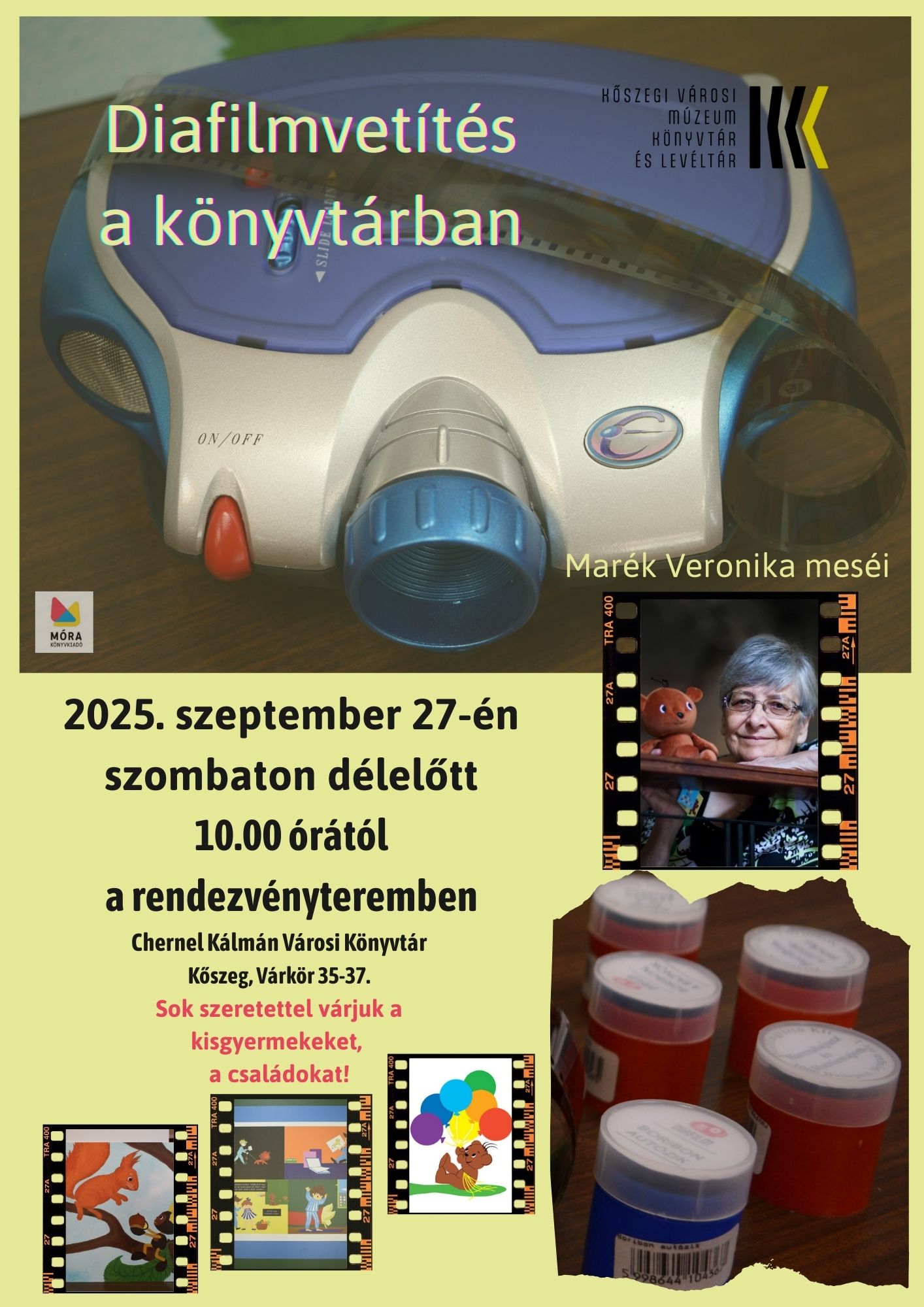 A Marék Veronika Életmű-kiállítás 2025. szeptember 28-ig tekinthető meg gyermekrészlegünkön. A kiállítás záróeseményeként, 2025. szeptember 27-én szombat délelőtt 10.00 órától meglepjük a kisgyermeket, óvodásokat, kisiskolásokat rendezvénytermünkben diafilmvetítéssel! Sok szeretettel várjuk a kisgyermekes családokat!