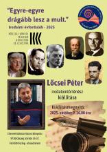 Az Országos Könyvtári Napok 2025 programsorozatának keretében 2025. október 9-én, csütörtökön 16.00 órakor nyílik Lőcsei Péter ny. gimnáziumi tanár, Toldy Ferenc-díjas irodalomtörténész hetedik kiállítása "Egyre-egyre drágább lesz a mult" - Irodalmi évfordulók 2025 címmel, a Nyugat, a Petőfi, az Anyanyelvi, az 'Így írtak ők, így írnak ők', a Weöres Sándor és az 'Értékek nyomában' vasi költők, írók tárlata után könyvtárunk felnőttrészlegének olvasótermében.